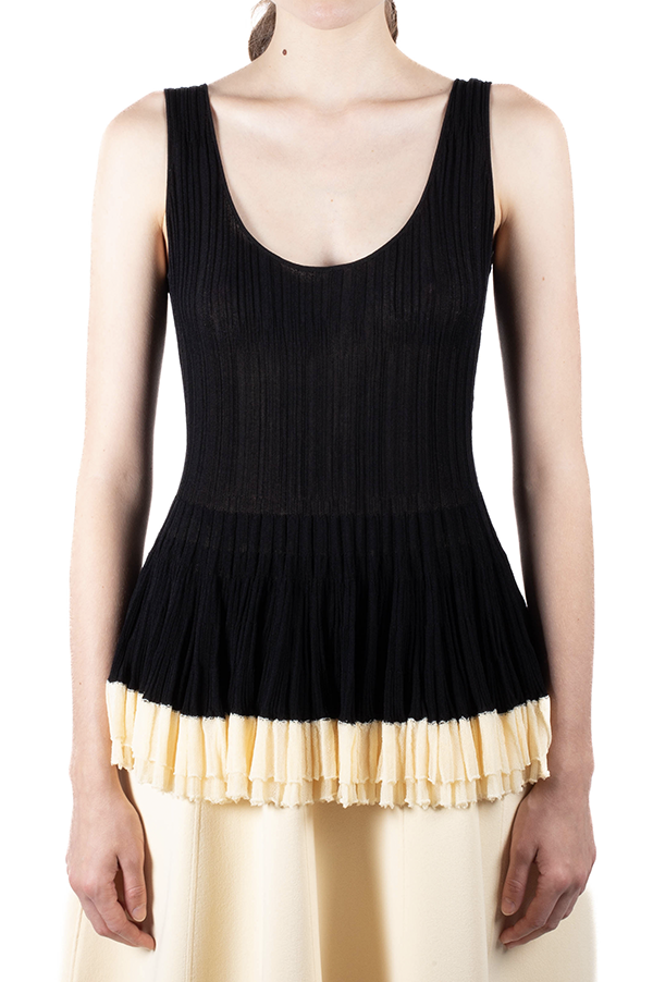 Made from an accordion knit, the 'Shino' sleeveless top has a fitted cut that flares out at the layered hem.