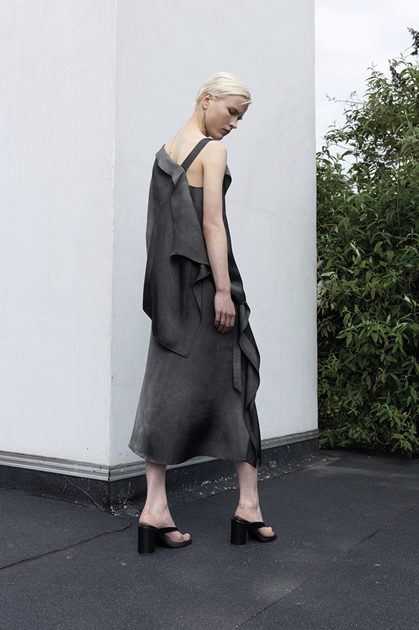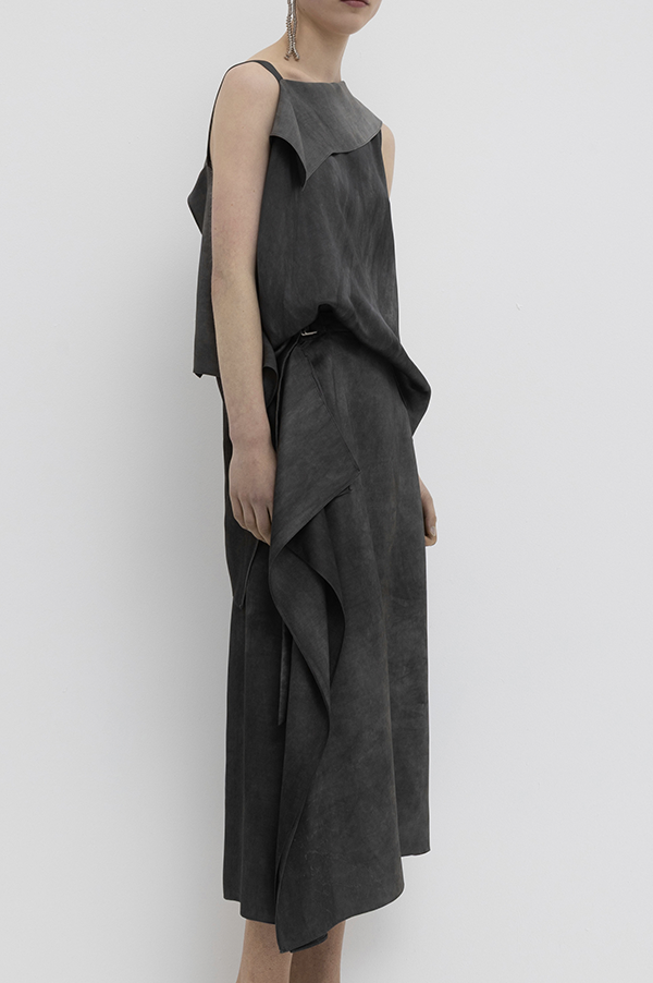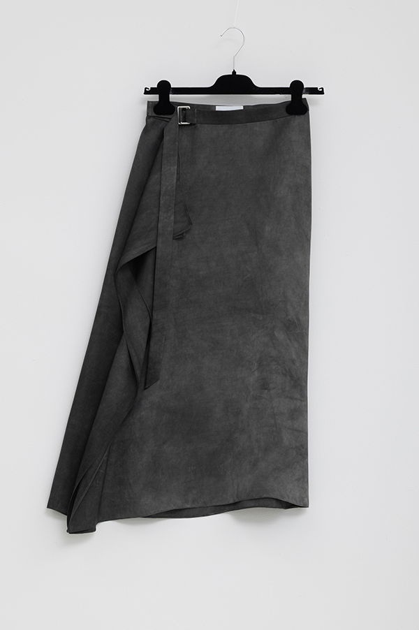 Scala Woven Skirt in chartreux viscose featuring an asymmetric cut and belt closure. The angled hem and soft fabric move with ease, adding quiet sophistication to your everyday looks. A distinctive piece that elevates simple styling with refined design.